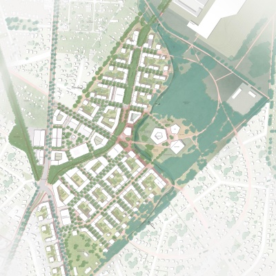 For sustainable urban building blocks, we incorporate existing structures and connect housing, working, and social services. Green open spaces and mobility solutions enliven the area and enhance the quality of stay.