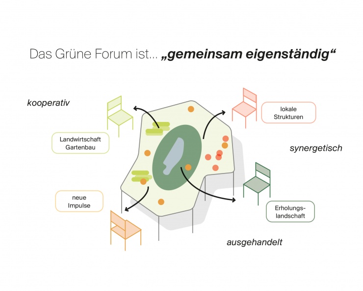 The landscape concept builds on the productive character of the moor and heath landscape, structured by park corridors and a fine-grained network of paths. Lakes, avenues and riparian zones provide continuity and orientation. The management of rainwater and groundwater becomes a strategic component of a co-productive landscape, integrating retention areas, greywater reuse, soil-sensitive land management and rewetting strategies.
