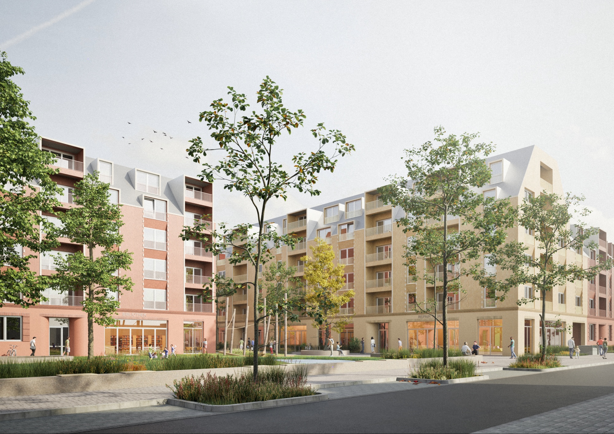 The buildings draw on local typologies: office and commercial blocks with distinctive plinth zones, and residential buildings with colour-differentiated façades, dormers, loggias, and mansard roofs. Flexible floor plans allow long-term adaptability. An underground car park, bicycle hubs, and short distances support a car-free lifestyle. The result is a vibrant urban building block that brings together openness, diversity, and high-quality open spaces to form a clear and robust neighborhood.