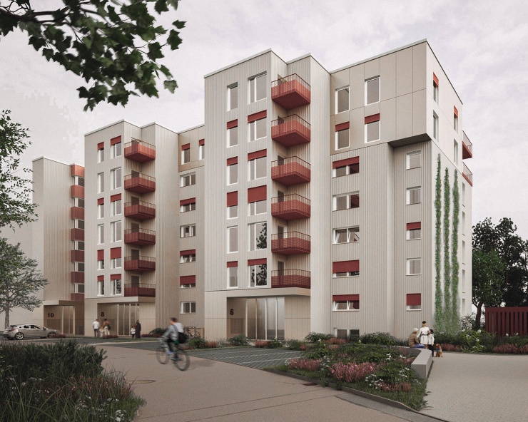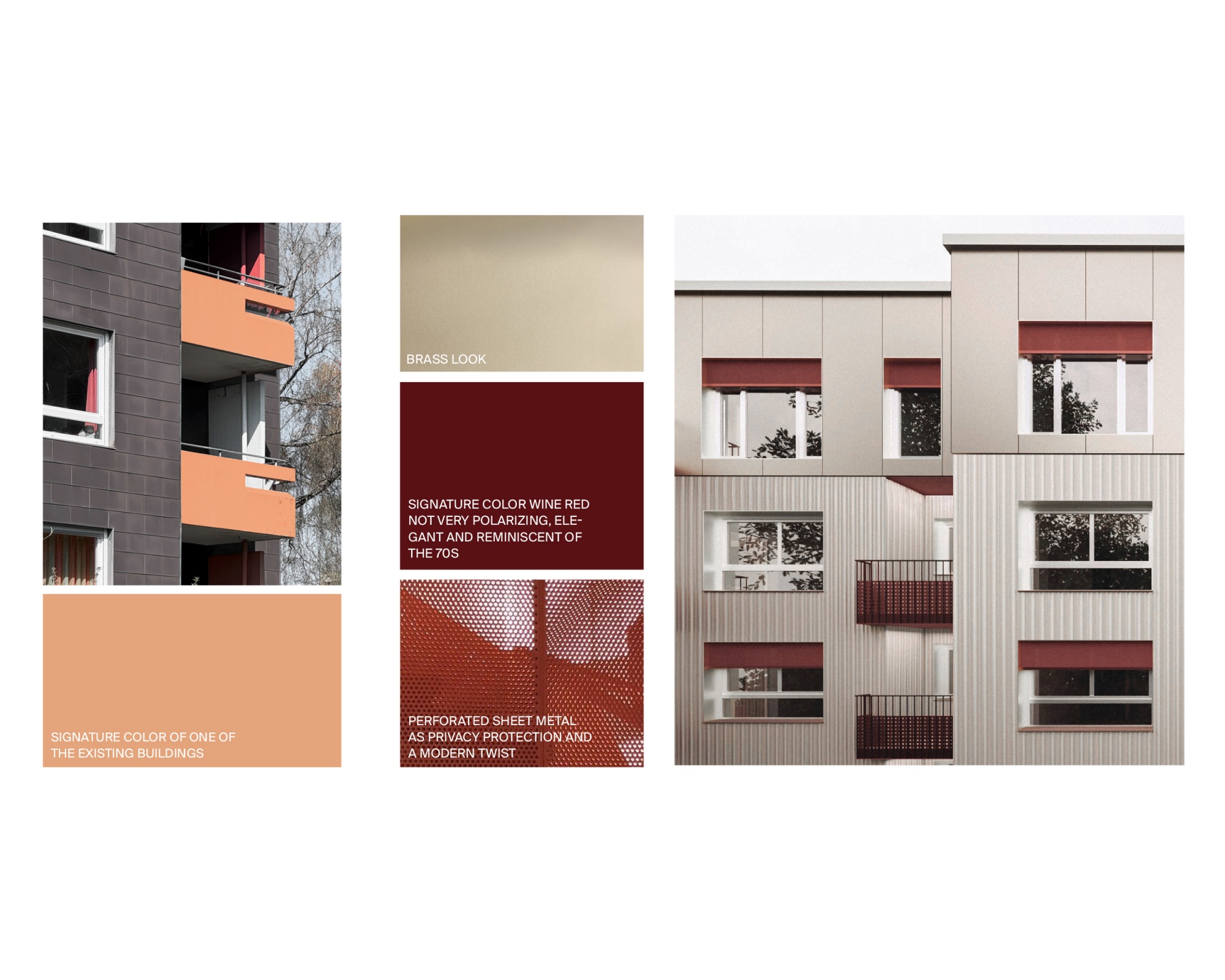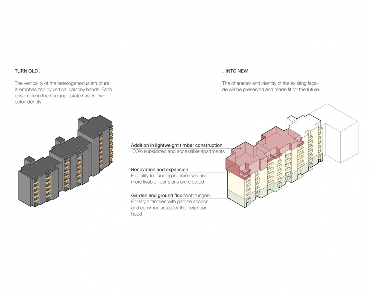 Two of the three building sections will be extended using lightweight timber construction. This method reduces the dead weight of the structure while also meeting high standards of sustainability and cost-effectiveness. In order to retain the existing residents in the long term, the energy-efficient renovation of the facade will be deliberately limited to the necessary extent. Serially manufactured, recyclable components are used; openings and balconies are based on the existing building in terms of scale and appearance. In this way, structural improvements can be made without triggering a noticeable increase in rent.