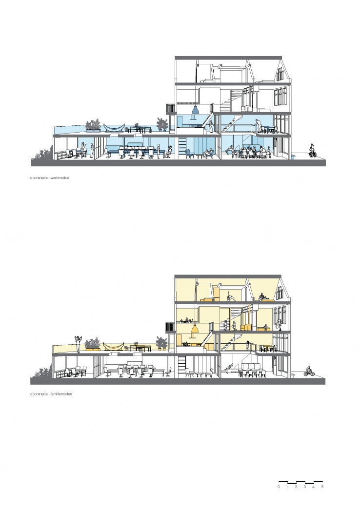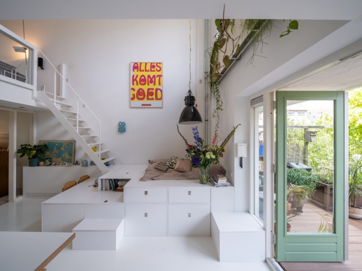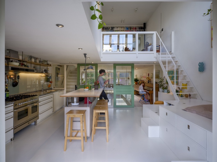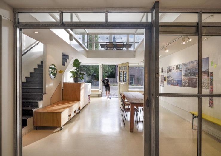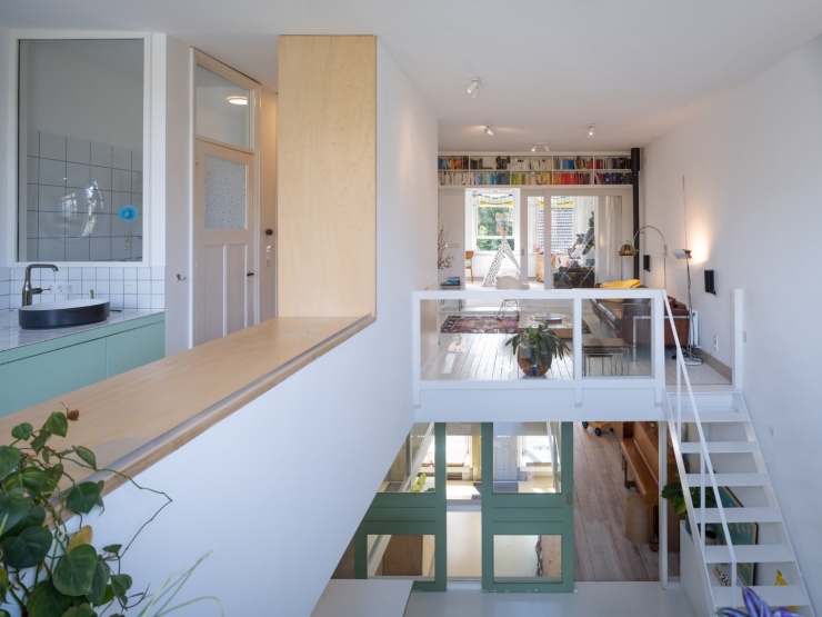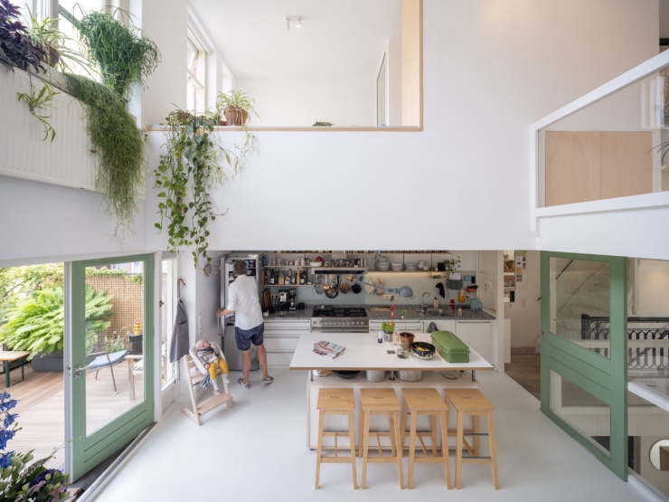 Dieses 1893 erbaute Haus in Oud-Charlois, das früher teils als Kunstgalerie, teils als Wohnhaus diente, wurde in ein helles, großzügiges, dreistöckiges Wohnambiente umgewandelt. Das Haus wurde so konzipiert, dass es ein Gleichgewicht zwischen dem ständigen Trubel des Familien- und Arbeitslebens schafft. Es besticht durch seine Offenheit über vier Etagen hinweg, fördert das Zusammenleben und bietet gleichzeitig Raum für vielfältige Nutzungsmöglichkeiten.